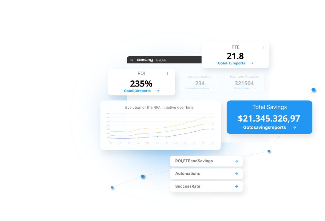Monitore e otimize suas automações com uma plataforma orientada por dados. A BotCity Insights oferece dashboards personalizados para acompanhamento de KPIs críticos, ajudando a maximizar o ROI e otimizar o uso de recursos.